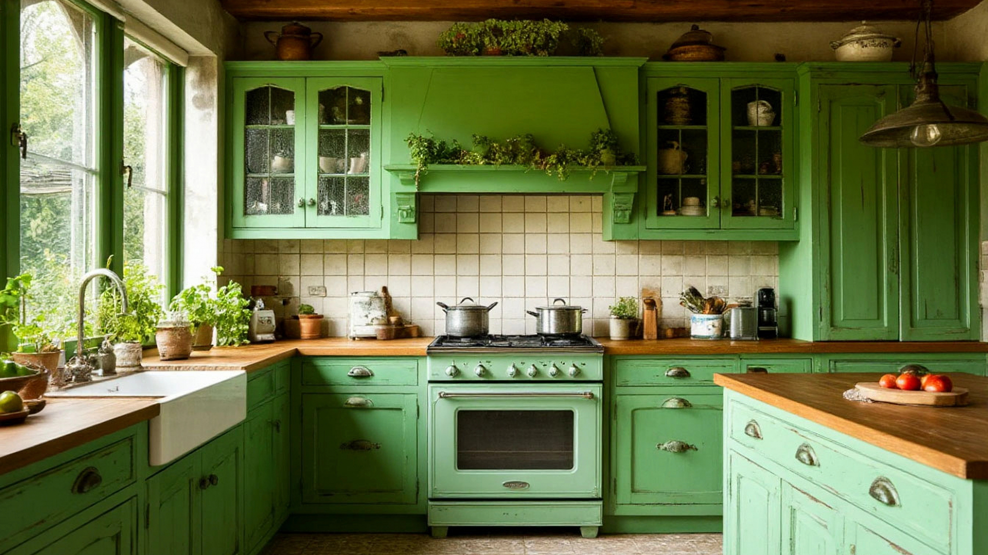 Цвет играет здесь ключевую роль. Зелёный в шебби шик — это не только символ природы, но и оттенок, который раскрывается по-разному при различном освещении. При дневном свете кухня кажется более свежей и воздушной, словно наполнена весенними ароматами. В вечернее время зелёный становится более глубоким, интимным, создавая камерное настроение. Такой интерьер никогда не утомляет: наоборот, он каждый день дарит новые эмоции, меняясь вместе с окружающей атмосферой.