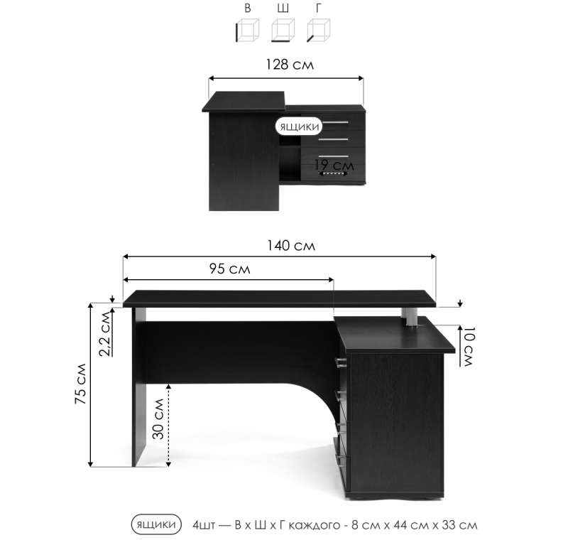 Толщина столешницы: 2,2 см.