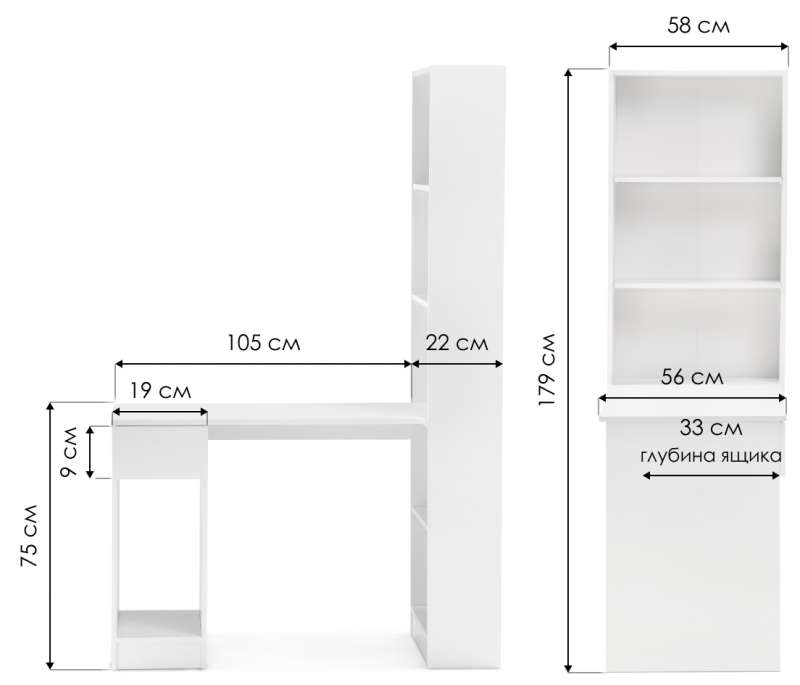Компьютерный стол Лайт 10.01 115,3х58,2х179 белый гладкий 101 (58,2x179).