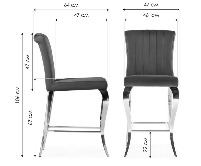 Высота спинки: 42 см. Высота подножки: 22 см.